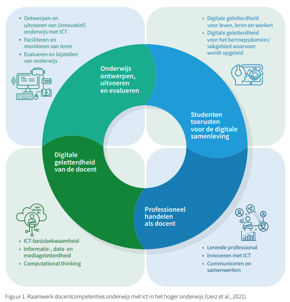 Deze competenties en gedragsindicatoren die voor ict of digitale hulpmiddelen zijn geformuleerd, zijn ook toepasbaar voor AI in het onderwijs. Een docent die AI-geletterd is: