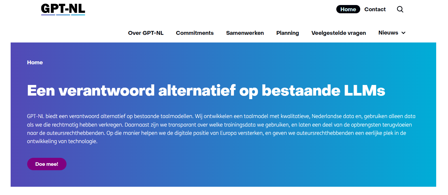 GPT-NL is een publiek gefinancierd initiatief (13,5 miljoen euro via RVO/EZK) om een eigen, transparant ecosysteem voor Nederland te creëren.