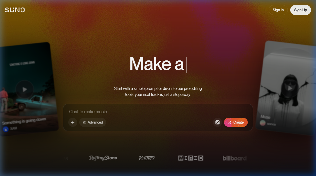Suno is een AI-muziekgenerator: beschrijf in een paar woorden welk nummer je wilt โ genre, sfeer, instrumentatie, thema โ en Suno genereert binnen seconden een volledig nummer met zang, instrumentale begeleiding en teksten.